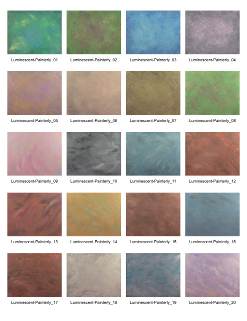 The Luminescent Painterly Texture Pack is a set of 20 royalty-free high-resolution images for creating texture overlay effects on your photographs or graphic design projects.